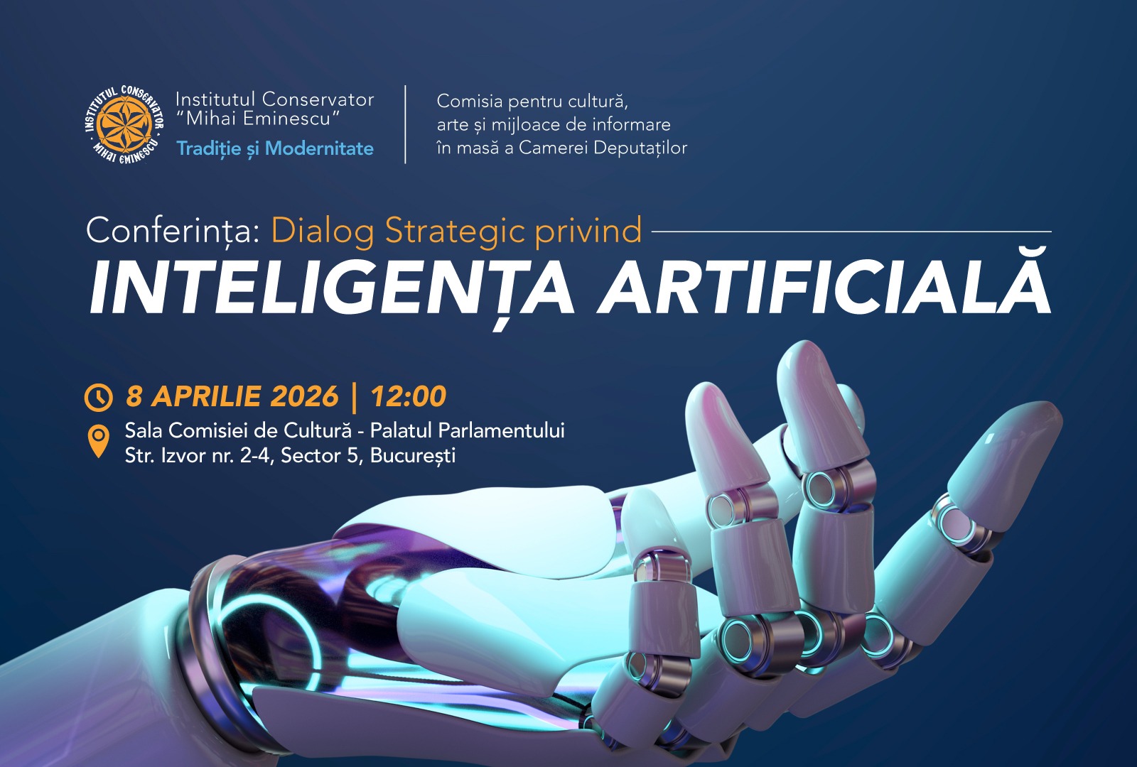 Institutul Conservator „Mihai Eminescu”, împreună cu Comisia pentru Cultură, Arte și Mijloace de Informare în Masă a Camerei Deputaților, te invită la conferința: Dialog strategic privind inteligența artificială